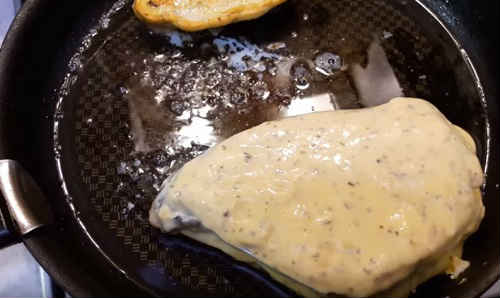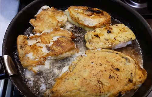 Викладіть шматки в масло. Посмажте з обох сторін до красивої скориночки. Нижня частина прожарюється повільніше.