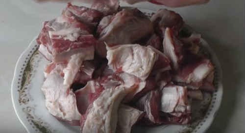 Обполосніть шматок м’яса, якщо берете реберця, то великі кісточки пропоную вирізати. Наріжте ребра шматочками.