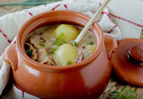 Одне з найулюбленіших страв, яке прийшло до нас із старовини – солянка, приготована в глиняних горщиках. За століття рецепт практично не змінився, хіба що гриби тепер беруть консервовані, та ковбасу з кетчупом додають.