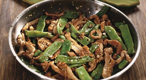 Рецепт на швидку руку, з мінімумом інгредієнтів. М’ясний продукт беріть будь: курку, свинину, яловичину, індичку. Блюдо всесезонно, його можна готувати цілий рік, оскільки в сезон ви готуєте з свіжих стручків, а взимку використовуєте заморожений овоч.