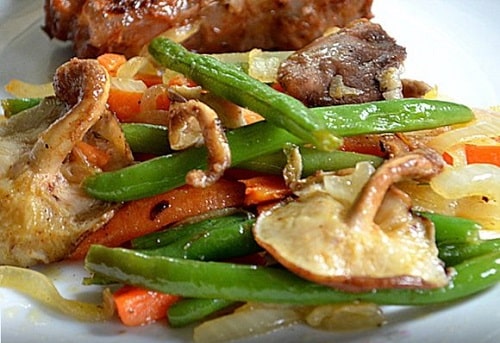 Як приготувати м’ясо з замороженої стручкової квасолею і грибами