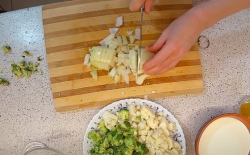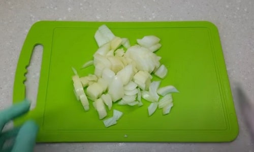 Покришите цибулину кубиками.