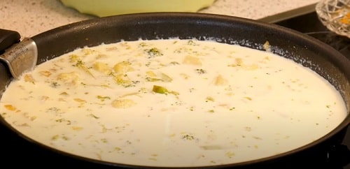 - Влийте молочну суміш в каструлю, посоліть. Проваріть суп-пюре ще 7 хвилин.