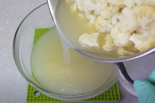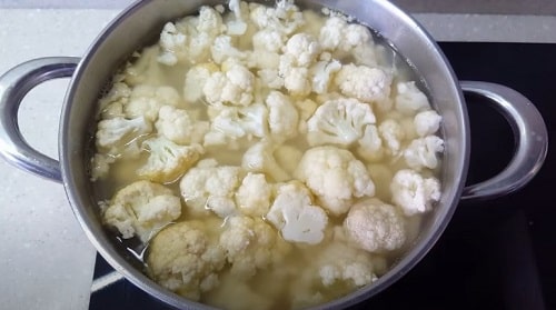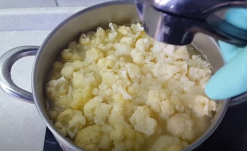 - Наріжте качан на суцвіття, промийте. Надішліть в каструлю з бульйоном. Варіть до м'якого стану.