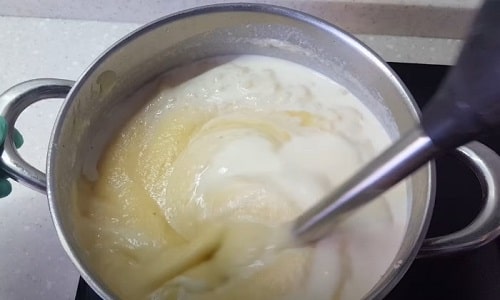Пробийте вміст каструлі блендером, домагаючись однорідної консистенції.
