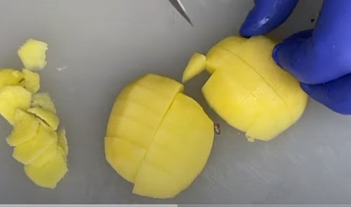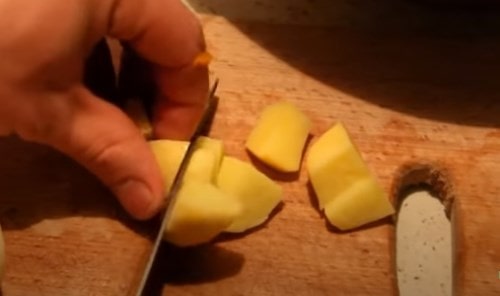 Аналогічно, кубиками середнього розміру, поріжте очищений картопля.