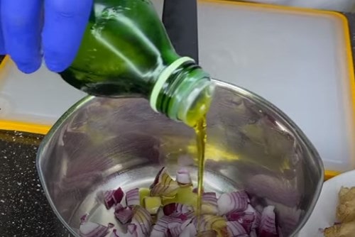 - Соняшникова олія, перець, сіль, зелена цибуля.