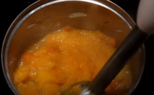 Дайте страві закипіти, вимкніть конфорку. За допомогою блендера перетворите вміст в пюре.