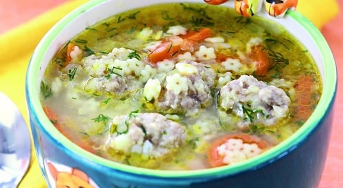 Блюдо використовують у дитячому харчуванні, але тоді не кладуть приправи і намагаються уникнути піджарки овочів. Суп готують на воді, уникаючи зайвих калорій, або на ситному м’ясному бульйоні. Фарш для фрикадельок робіть на свій смак. Годиться свинина, яловичина, курка, індичка. Але краще, якщо ви змішаєте хоча б кілька видів м’яса. За бажанням додайте овочеву піджарку з лука і моркви, інші овочі.