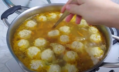 - Краще формувати маленькі заготовки, щоб крім фрикадельок, в ложку містився бульйон з овочами.
