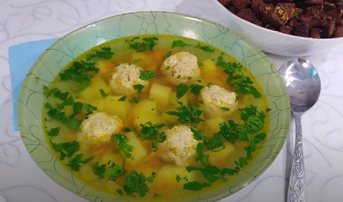 Самий легкий супчик, зварений з фрикадельок, зроблених з курячого фаршу. Смачний, ароматний, ситний.