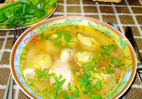 Найбільш популярний рецепт приготування – на курячому бульйоні. Блюдо легке, майже дієтичне.