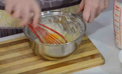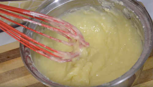 Почніть підсипати борошно, одночасно швидко перемішуючи вміст. Вийде щось типу каші.