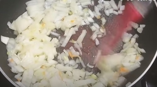 - Обсмажте цибульну нарізку і моркву до рум’яного кольору.
