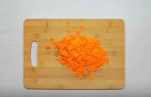 - Морквину, або гарбуз, якщо захочете взяти її, покришіть аналогічно, кубиками.