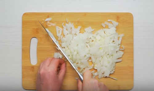 Покришіть цибулину, закиньте на сковороду в розігріту олію.