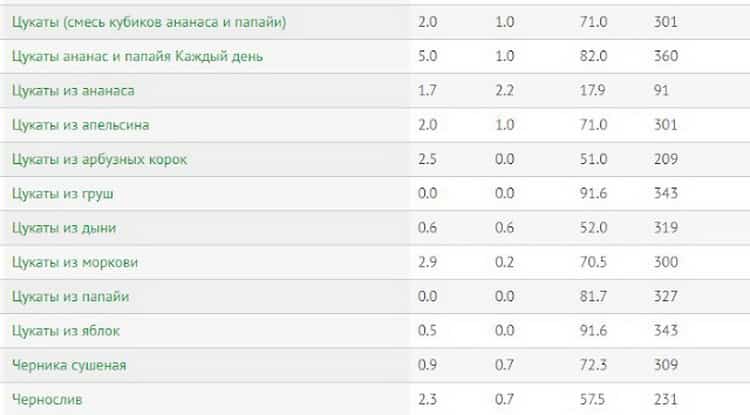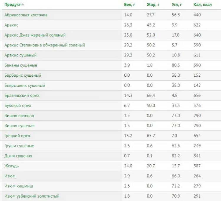 При наборі ваги знижуйте обсяг вживання або замініть іншим, менш калорійним видом продукту. Нижче надаємо таблицю калорійності різних видів сухофруктів на 100 грамів.