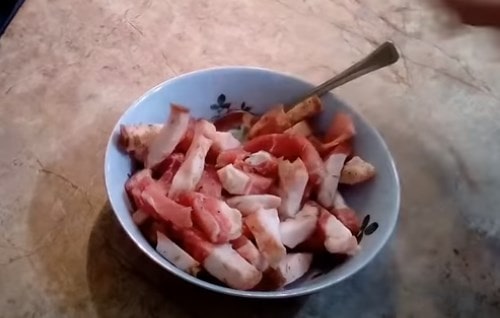- У солодкого перцю вирізати насінну частину, потім поріжте соломкою. Цибуля настрогайте півкільцями. Помідори наріжте кубиками, не дуже дрібно.