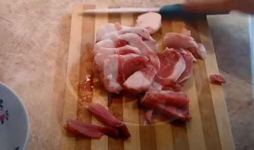 - Наріжте промитий і підсушений шматок кубиками середньої величини.