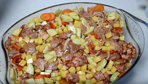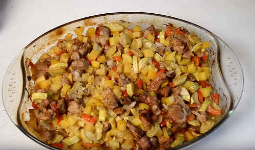 Свинина з картоплею і овочами в духовці – рецепт (покроково)