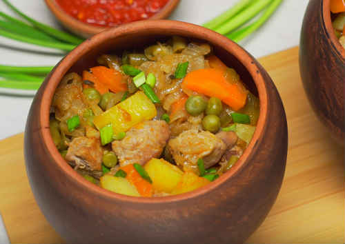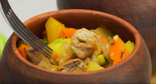 М’ясо, тушковане в глиняних горщиках, стає соковитим, тривалий ловлення надає йому особливого смаку. Рецепти жаркого можна коригувати під уподобання членів сім’ї. На приготування зазвичай беруть вирізку або дрібні реберця порося. А далі все залежить від того, що ви хочете бачити в тарілці. Крім картоплі, кладіть будь-які овочі: помідори, перець, стручкову квасолю, горошок, цвітну капусту і так далі. Не кажучи вже про моркви з цибулею – постійних супутників м’ясних страв.