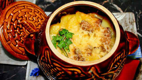 Рецепт картоплі з м’ясом і сиром в горщиках