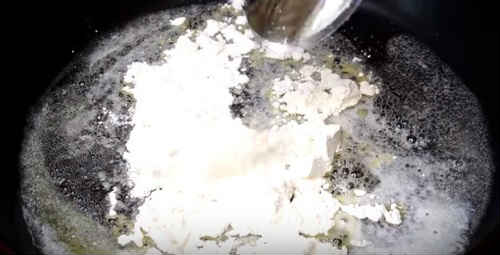 Розпустіть на сковороді вершкове масло, влийте ложку рослинної. Засипте борошно. Смажте, не припиняючи помішувати ні на секунду, інакше борошно пригорить, і підлива буде гірчити.