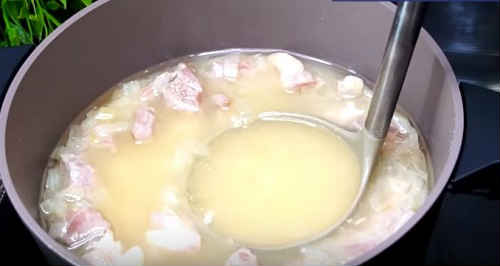 Після закінчення заданого часу відлийте 3 ополоника бульйону в окрему мисочку.