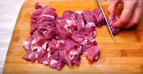 Обполосніть вирізку, обсушити, наріжте невеликими шматочками (розмір по вашому бажанню).