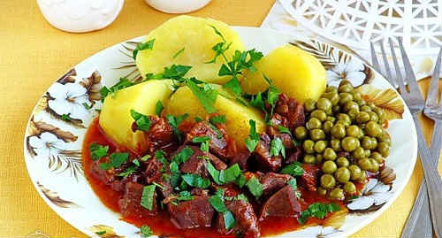 Якщо невеликі шматочки, час приготування скоротіть. Майже вся рідина випарується, на сковороді залишиться смачне м’ясо з не менш апетитною підливою.