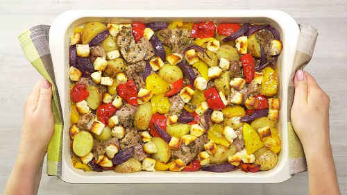 Свиняче м’ясо-гармошка з овочами – відео-рецепт