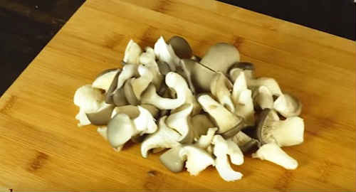 - Покришіть печериці пластинами, цибулиння головку поріжте кубиками.