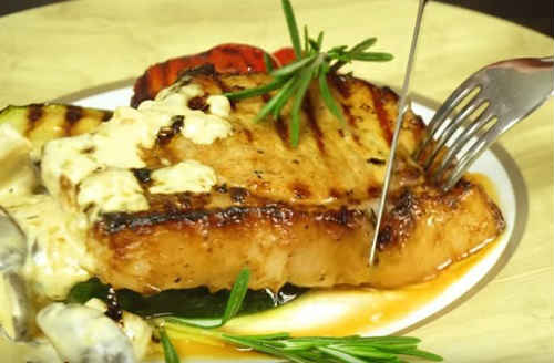 Стейк зі свинячої корейки в духовці під цибулею і сиром — відео