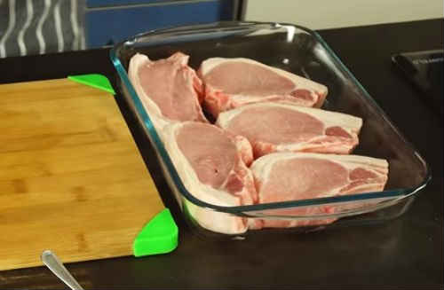 - Вирізку наріжте відбивними. Ріжте поперек волокон, шматочками товщиною приблизно в 2 сантиметри.