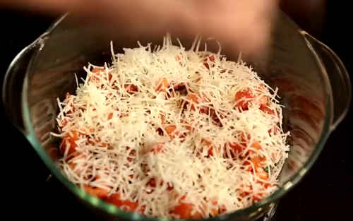 Зверху розкидайте стружку Пармезану.