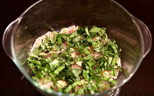 - Базилік – 2 великі ложки (нарізка).