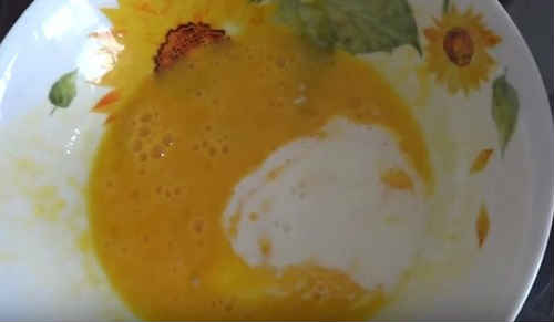 Розбийте в миску яйце, підсолити, розколотіть віночком.
