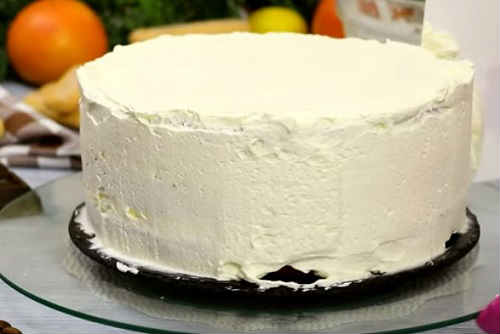 Залишився крему повинно вистачити на оформлення верху десерту і боків. Старанно розрівняйте всі поверхні.