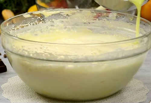 Увага! Продукти для приготування крему повинні бути охолодженими, тільки з холодильника. На випічку бісквіта, навпаки, дістаньте інгредієнти заздалегідь, щоб вони стали кімнатної температури.