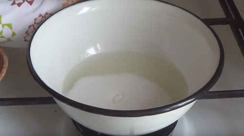 Трохи зігрійте сироватку. Не перегрейте, палець повинен терпіти. Відразу відлийте півсклянки для гасіння соди.