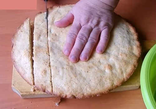 - Потім розламайте його шматочками прямо руками або наріжте, як в першому рецепті. Обрізки роздрібніть в крихту, вони підуть на обсипання.