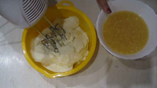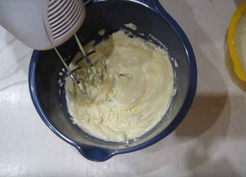 Почніть невеликими порціями додавати лимонну манку. Кожну порцію збивайте буквально 20-30 секунд, або зменшіть обертів, щоб не перебити, інакше масло може відокремитися.