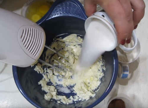 Розімніть масло. Почніть його збивати міксером, поступово, у кілька прийомів, додавши цукровий пісок.