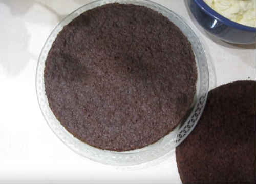 Готовий корж поділіть на три частини.