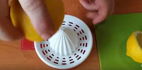 Розріжте лимон навпіл, вичавити сік. Якщо любите дуже солодкі десерти, лимон можна виключити.