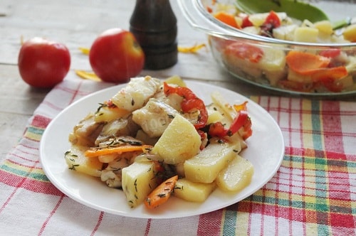 Тріска в духовці з картоплею – рецепт з цибулею та морквою