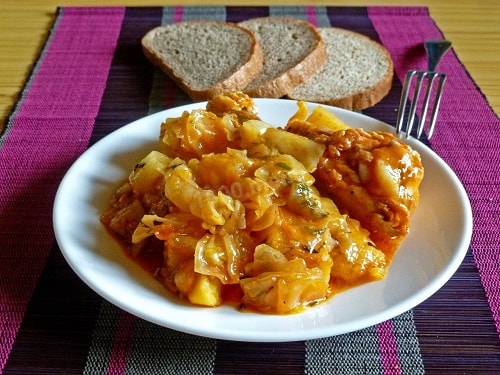Квашена капуста, тушкована з картоплею і куркою в мультиварці