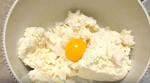 - Для приготування начинки змішайте сир з яйцем, посоліть.