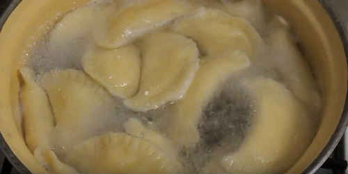 - Відварити вареники протягом 5 хвилин у підсоленій воді.