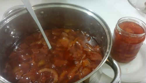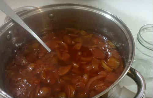 Дуже смачна варіація улюбленого варення, сподобається навіть вибагливим гурманам. Раджу брати трохи недозрілі плоди, або дочекатися дозрівання твердим осінніх сортів.